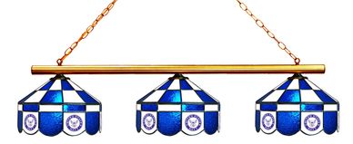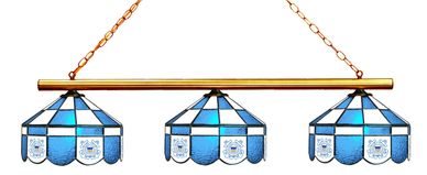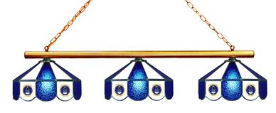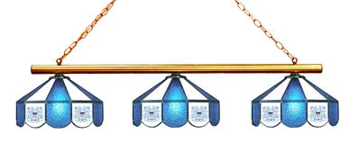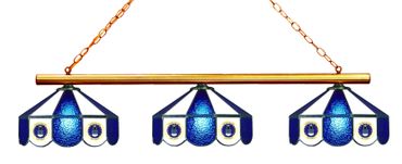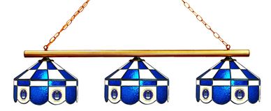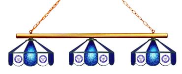 This lamp comes with three beautifully handcrafted 14” old world Tiffany style Stained glass lamp shades. Heave duty Antique brass finished bar is 48” long, fully wired for direct wire with 3 UL. Approved high quality porcelain light sockets comes with two 4’ of heave duty antique brass chain and 6’ of wire, canopy kit Ceiling mount included. (Only one cord goes up to canopy) Handmade in the U.S.A. Light bulbs are not included. Lamp measures 54” Long X 14” Wide